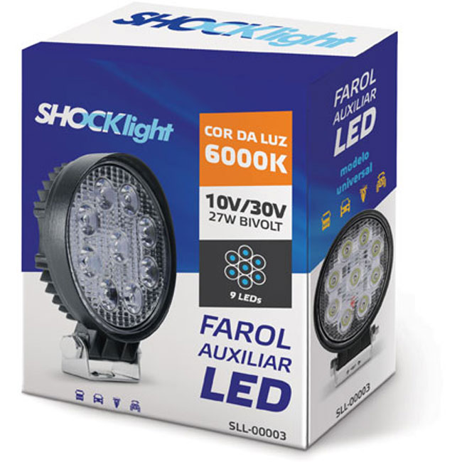 FAROL AUXILIAR 9 LEDS REDONDO UNIVERSAL 6000K BRANCO 10/30V 2400LM