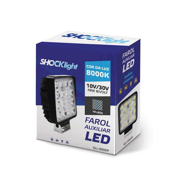 FAROL AUXILIAR 16 LEDS QUADRADO UNIV. 8000K AZUL 10/30V 4200LM