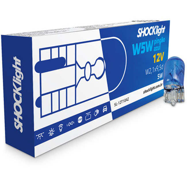 LÂMPADA T10 12V W2,1 X 9,5D PINGÃO AZUL